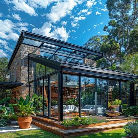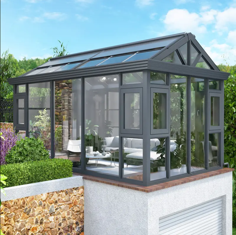 Contemporary Garden Design Aluminum Frame Glass Roof 4 Season Sunroom Conservatory Glass House Sunroom